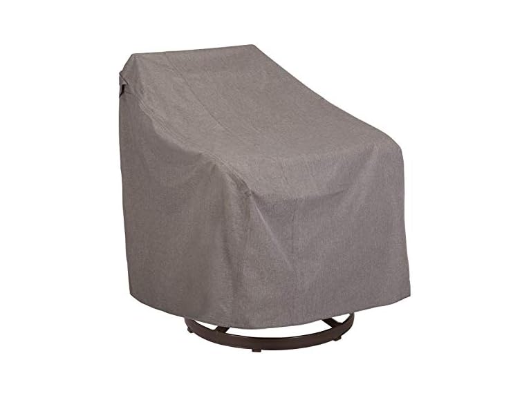 - LOUNGE CHAIR COVER: Our durable cover fits most standard outdoor patio lounge and swivel chairs up to 37.5" L x 39.25" W x 38.5" H. It does not entirely cover the chair's wheels or feet.