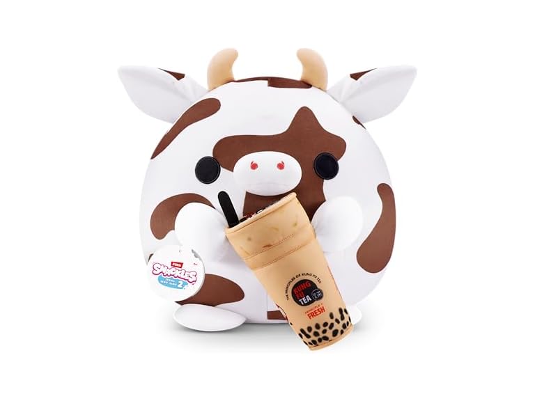 - (1) Snackles Series 2 16-inch by ZURU Cuddly Squishy Comfort 16-inch Plush with Licensed Snack Brand Accessory (Cow&Kung Fu Tea Bubble Tea)