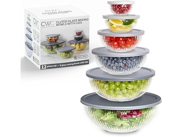 - COOK WITH COLOR 12 Pc Glass Mixing Bowl Set with Lids, Borosilicate Glass Nesting Bowls for Cooking, Baking and Meal Prep