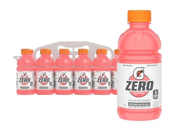 - Includes 12 (12 fl oz) bottles of Gatorade Zero Sugar Thirst Quencher, Watermelon Splash flavor