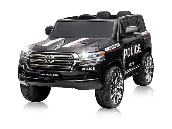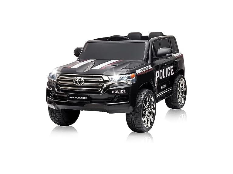 - 12V Kids Ride on Car, SXYCMY Electric Police Car Battery Powered Motorized Electric Vehicle Remote Control, 4 Wheels Toy Car Electric Vehicle for Kids, LED Headlights, Double Open Doors, Black