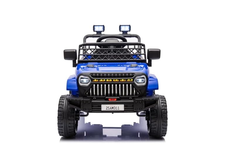 - Realistic Driving Experience: This electric truck features bright LED headlights, lockable doors, and a grid windshield for an authentic off-road style, providing children with a true driving experience. The one-button start makes it easy to operate, while the adjustable seat belt ensures the safety of your kids. With four stable spring suspension systems, your child will enjoy a smooth and comfortable ride in this kids' ride-on truck.