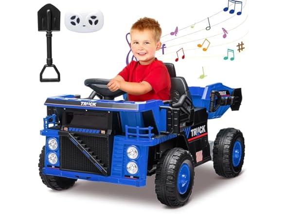 - INTERACTIVE ENTERTAINMENT FEATURE: This ride-on dump truck comes with a built-in music player, adding an element of entertainment to every drive. Kids can listen to their favorite music while driving, enriching their gaming experience and making every journey an exciting adventure, perfect for young building enthusiasts