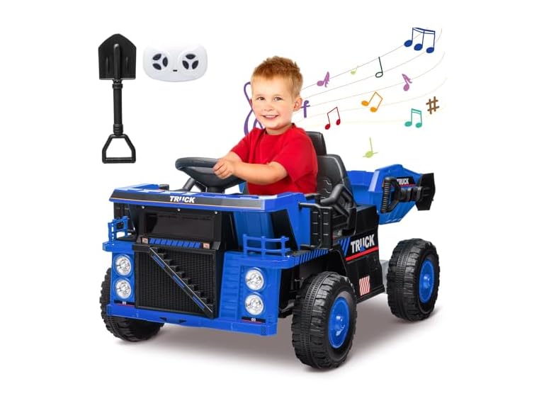 - 12V Ride On Dump Truck,Kids Car Toy with Remote Control,Electric Dump Bed,Shovel, 12V Construction Vehicle for Kids with Music Player, High and Low Speed,Blue