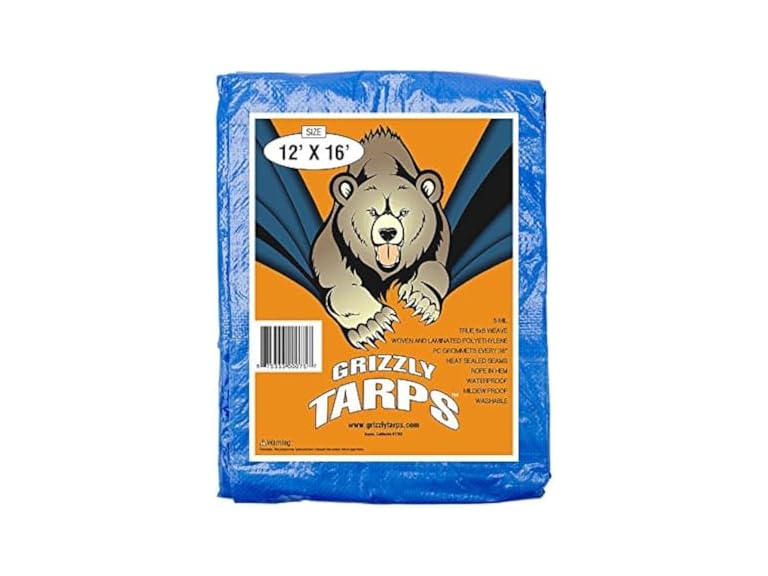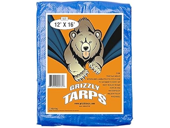 - Grizzly Tarps by B-Air 12' x 16' Large Multi-Purpose Waterproof Heavy Duty Poly Tarp with Grommets Every 36", 8x8 Weave, 5 Mil Thick, For Home, Boats, Cars, Camping, Protective Cover, Pack of 10,