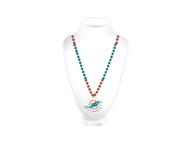- (1) Rico Industries NFL Football Miami Dolphins Bead Necklace With Molded Medallion - Great Game Day Accessory 3" x 24"