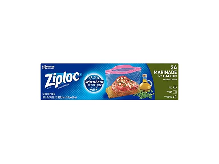 - (1) Ziploc Marinade Bags, Expandable Bottom with Easy Open Tabs, Half Gallon, 24 Count, Pack of 3 (72 Total Bags)