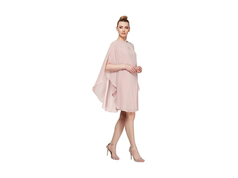 - (1) S.L. Fashions Women's Two Piece Knee Length Capelet Jacket Dress Keyhole Neckline, Fadedrose, 14