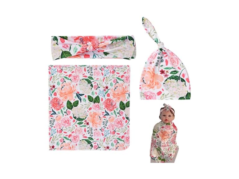 - These floral newborn swaddle set is made from premium mix knit fabric which is soft and comfortable meanwhile