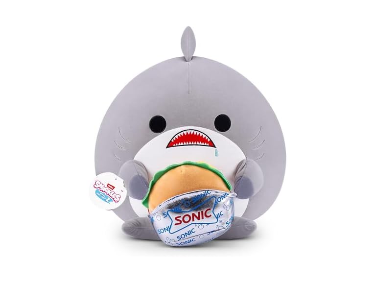 - (1) Snackles Series 2 16-inch by ZURU Cuddly Squishy Comfort 16-inch Plush with Licensed Snack Brand Accessory (Shark&Sonic Burger)