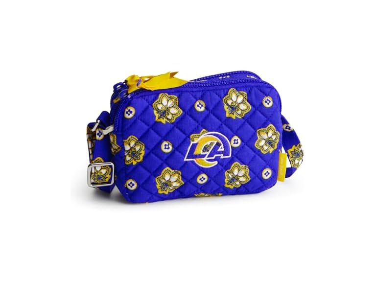 - (1) Vera Bradley Women's Cotton Nfl Small Stadium Crossbody Bag (Multiple Teams Available), Losangelesramsonnavyblue/Yellowbandana, One Size