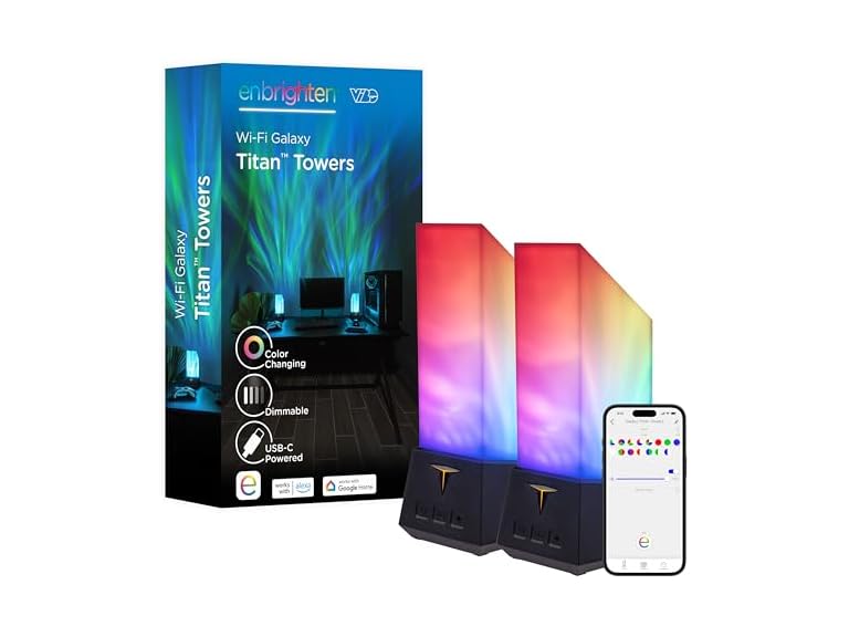- Enbrighten Vibe Smart Gaming Tabletop Galaxy Projector Titan Tower Wall Plug-in Night Light with Space Nebula Effects, Parties, Kids & Adults,Alexa and Google Compatible 84122