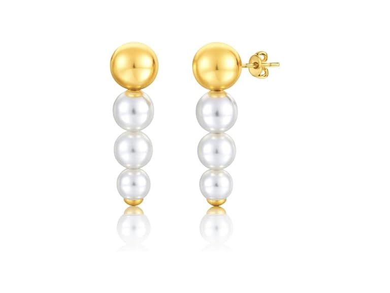 - STYLE: Classic drop earrings 34mm length featuring ball stud and graduating pearls with secure pushback