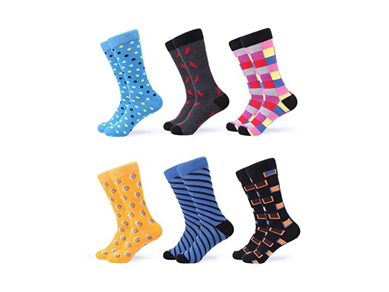 - (1) GALLERY SEVEN Mens Socks, Assorted Colorful Fun Bright Patterned Casual Dress Socks 6-Pairs