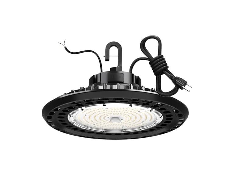 - Super Bright & Energy Saving: Our 150W high bay led lighting provides 22500 lumens output, which super bright light replace outdated HID fixtures with resilient & durable illumination and save your electricity bills up to 85%. High Bay LED Shop Lights designed with 120° beam angle, Its clear and color-friendly light reduces eye fatigue.