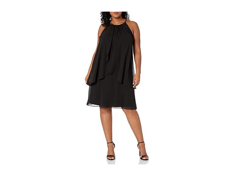 - (1) S.L. Fashions womens Plus-size Embellished Halter Neck Tier Special Occasion Dress, Black, 14 Plus