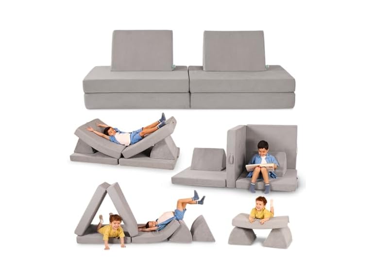 - (1) B. toys – Foam Fort Playset – Modular Foam Building Set – Sensory Fabric Covers & Handles – Removable & Machine – Washable Covers – 12+ Months – WonderFort