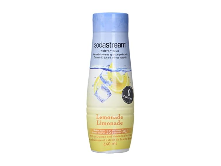 Ingredients Water, citric acid, trisodium citrate, natural flavours, sucralose, potassium sorbate, stevia leaf extract More Info Open tab Each 440ml bottle makes 35 servings (9 liters) of flavoured sparkling water. Creating your own flavoured sparkling water at home has never been easier! For use with SodaStream Sparkling Water Makers (sold separately). Ingredients Open tab Water, citric acid, trisodium citrate, natural flavours, sucralose, potassium sorbate, stevia leaf extract