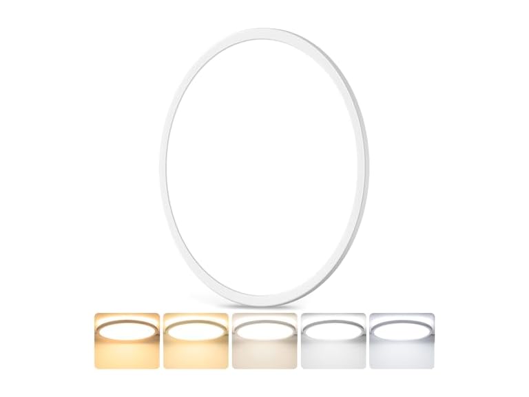 In the Box: (1) 16.5Inch LED Flush Mount Ceiling Light Fixture, 32W LED Ceiling Light 5 Color Temperature in One (2700K-6500K), 4200 LM Super Thin Round Panel Lights for Bedroom, Living Room, Kitchen, Laundry, 1-Pack