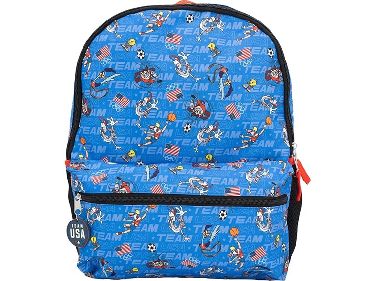 - Looney Tunes kids backpack: Join team USA with this fun novelty Looney Tunes Team USA backpack . It features an allover print of the most popular characters from the Looney Tunes video game including Bugs Bunny, Lola Bunny, Tweety Birds, Road Runner, and the Tasmanian Devil.