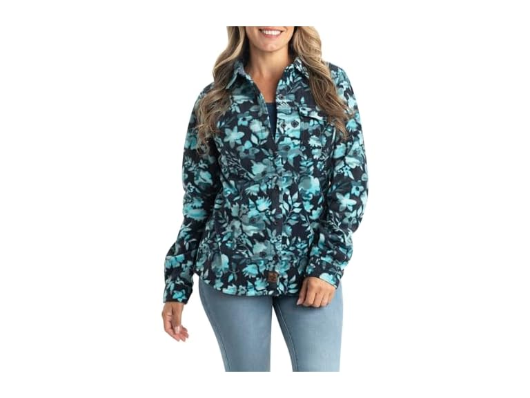 - (1) Legendary Whitetails Women's Trail Guide Fleece Button Down Shirt, Floral Camo, X-Small