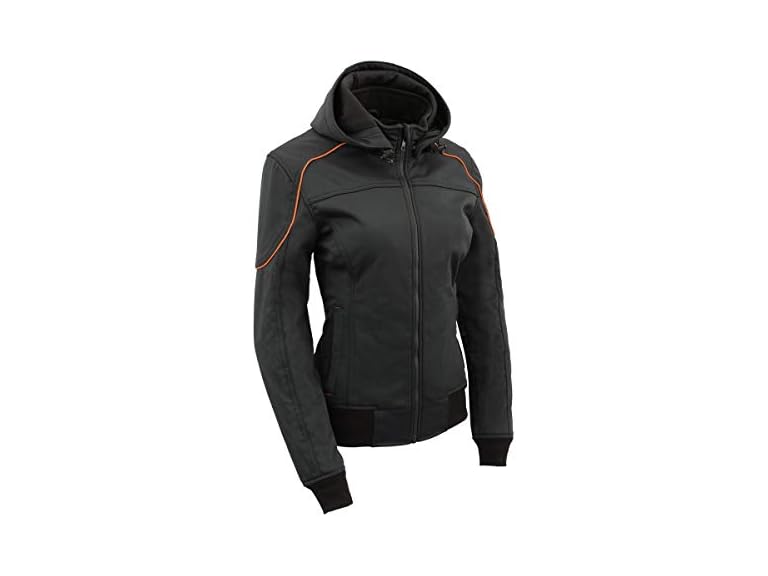 - Milwaukee Leather MPL2764 Women's Black Soft Shell Armored Motorcycle Racing Style Jacket with Hoodie - Large