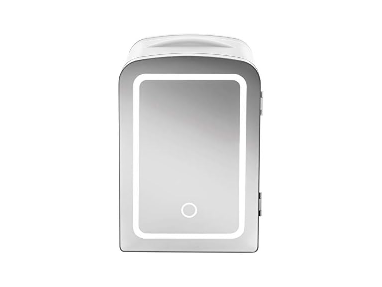 - MAKEOVER YOUR DESK: Compact design is perfect for storing your essentials at home, at work, in a dorm, or even on the go. The bright LED light and mirrored door add an extra design flare to any space and make this personal fridge the ideal accessory for your morning routine..Freezer Capacity:4 liters.Fresh Food Capacity: 6 liters
