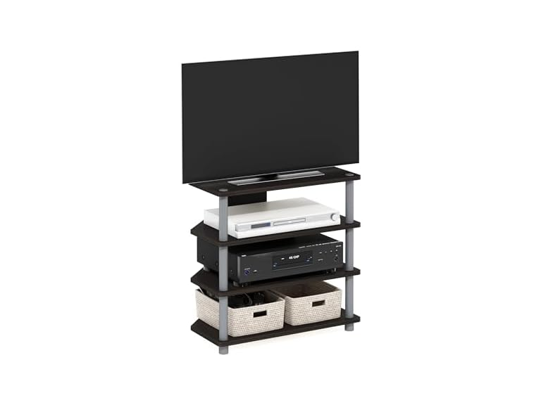 - (1) Furinno Turn-N-Tube Easy Assembly 4-Tier Petite Entertainment Center / TV Stand / TV Unit / TV Desk, Espresso/Grey