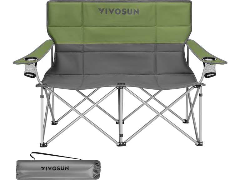 - Height Adjustable Armrests: The height adjustable armrests on this double camping chair ensure proper lumbar and arm support; The ergonomic backrest, full back structure, and large cushion area provide you with better support and superior comfort during extended periods of seating