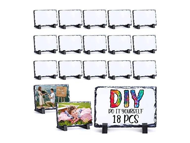 - Packing List: you will receive 18 pieces of dye sublimation board blanks and 18 pairs of plastic brackets, allowing you to place the transfer stone board anywhere you want to decorate, natural board cutting, there will be a little error in size, the quantity is enough for your own use or as a gift for family and friends
