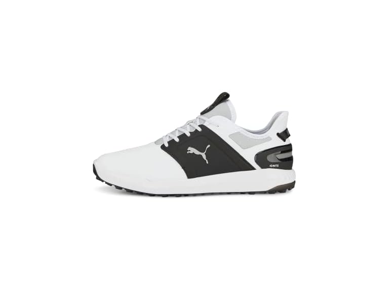 - (1) PUMA Men's Ignite Elevate Golf Shoe, White Black-Metallic Silver, 7