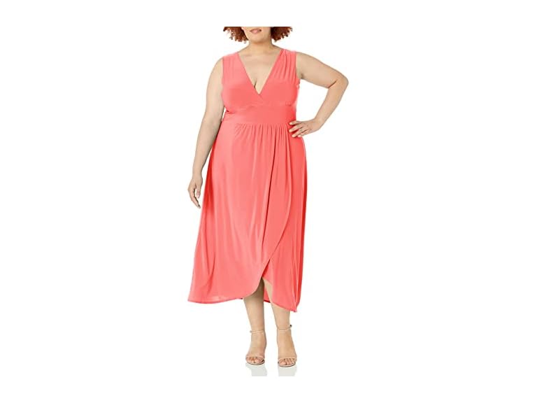 - (1) Star Vixen Women's Plus-Size Sleeveless Surplice Tulip Skirt Empire Band Maxi Dress, Coral, 2X