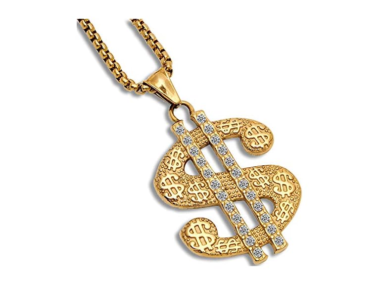 - (1) HUITIAN INTL Dollar sign necklace, rap chain, hip-hop chain, dollar sign gold chain, Men's gold chain, Men's gold chain, dollar sign chain, money chain, lady,