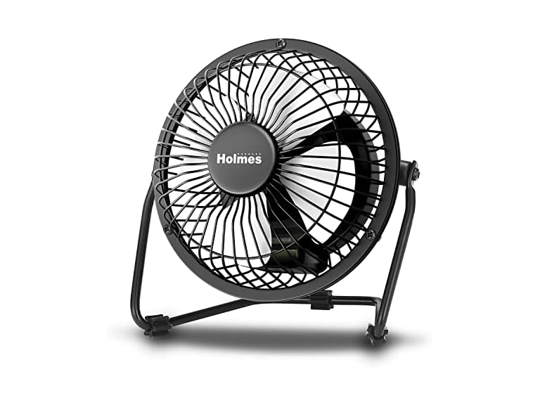 - (1) HOLMES 4" Mini High-Velocity Personal Desk Fan, 4 Blades, Adjustable 360° Head Tilt, Durable Metal Construction, Single Speed, Ideal for Home, Dorm Rooms, Bedrooms, or Offices, Black