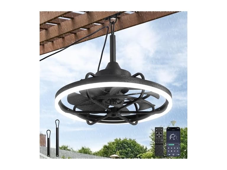 - [Weather-Resistant DESIGN]:Our fan blades are made of 7 high-quality ABS materials, and the entire fan is designed with a wet-rating, boasting an impressive IP65 waterproof rating. It is perfect for outdoor spaces such as patios, decks, porches, canopies, and gazebos. 2 hanging options – 8 inches or 12 inches