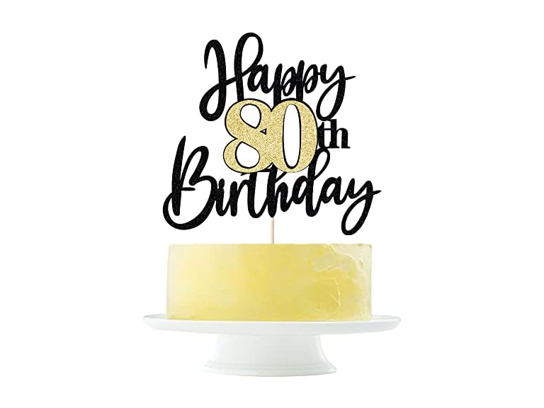- (1) Yetxel Black Gold Glitter Happy 80th Birthday Cake Topper,Happy 80 Birthday Cake Decoration for 80 & Fabulous Birthday,Hello 80 Party Anniversary Party Cake Decorations Supplies