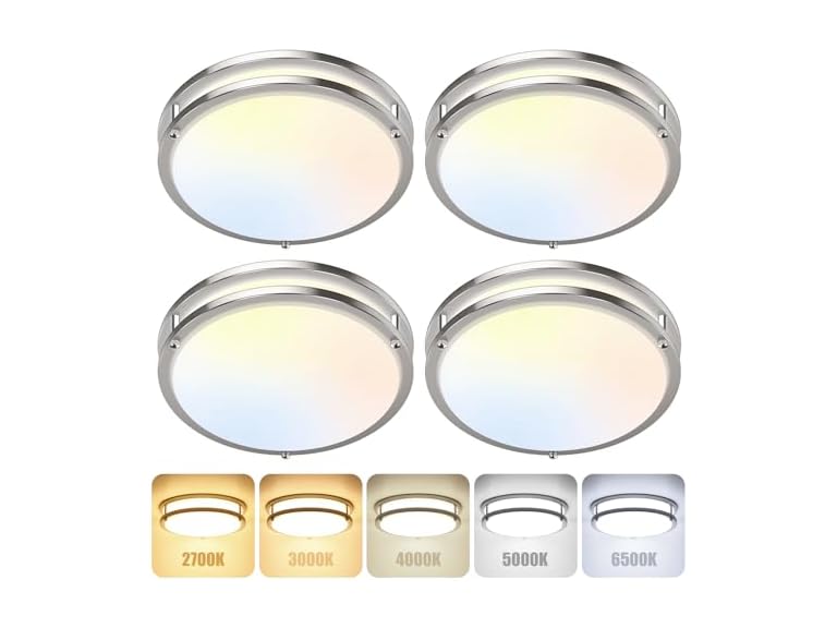 - 5 Color Temperatures in 1 Ceiling Light: The LED flush mount ceiling lights are available in 5 adjustable color temperatures: 2700K (yellow warm) & 3000K (soft white), 4000K (neutral white), 5000K (daylight) & 6500K (ultra-bright). You can choose different color temperatures to create various vibe that transforms your space into a sanctuary of tranquility, productivity, or celebration