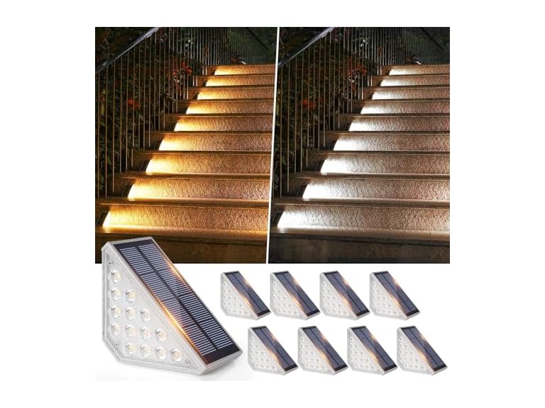 - 1 Bosceos Light = 2 Others: Thanks to the 2-in-1 LED beads design, Bosceos solar stair lights will be a cost-effective lighting choice by offering 2 different light colors: warm white and cool white. Less cost but more function achieved! Warm light creates a cozy and relaxing atmosphere, while the white light offers reliable lighting effects. These solar step lights perfectly apply to stairs, steps, walkway, sidewalk,pathway, front door, yard, garden, patio, porch,etc