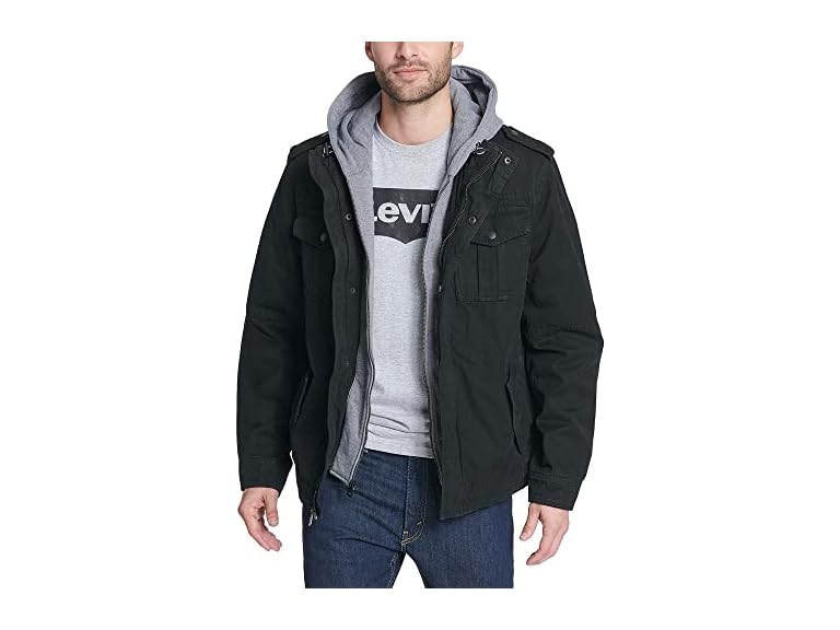 - (1) Levi's mens Two-pocket Hoodie With Zip Out Jersey Bib/Hood and Sherpa Lining