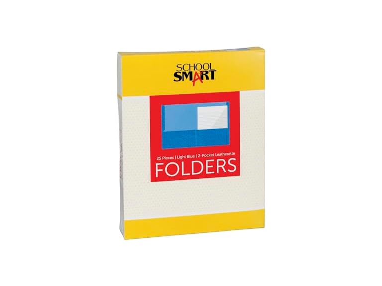 - (1) School Smart Extra-Large Folders with Pockets, 9 x 12 Inches, Light Blue, Pack of 25