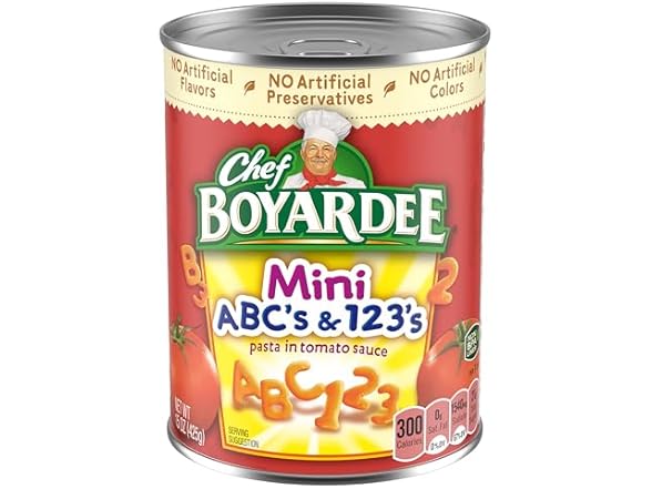 - Delicious and convenient, Chef Boyardee Mini ABC's and 123's has the real ingredients and rich flavor that families know and love