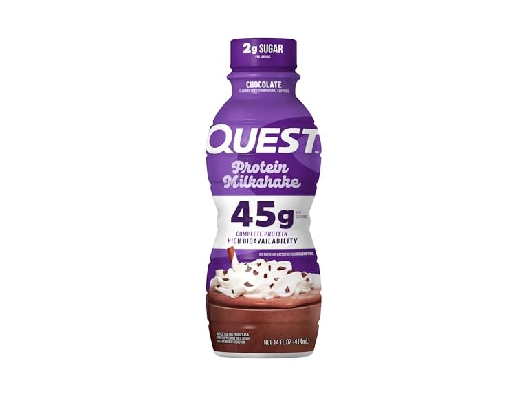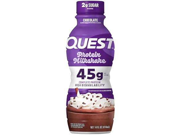 - HACK YOUR SHAKE. Quest Chocolate Flavored Protein Milkshakes deliver the chocolate flavor you love with 45g of high bioavailability protein per serving so you can experience the rich satisfaction of a milkshake - without saying “no” to protein.*Per serving
