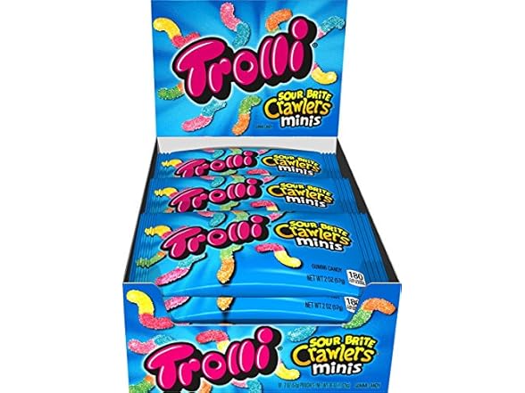 Trolli Sour Brite Crawlers Minis provide mouth meddling, tangy, weird wormy goodness and lip smacking, sweetly sour, mind warping tastiness. Home of America's Best Selling Gummy Worm, Trolli candy has weirdly awesome flavors, weirdly awesome shapes, and weirdly awesome fun. These gummies are 100 percent of the daily strange required for teens. Sour and sweet, delicious and demented. So much has changed since the first Ferrara candy rolled off the line and into stores in 1908. But the same creativity and innovation that fed those early years remains at the heart of our company. In fact, it's what has made us the number one non-chocolate candy manufacturer in the U.S. We've got a sweet history-but an even richer opportunity for future growth and success is right at our doorstep. Our mission is to take the brands that have been loved for generations to the next level. In 2012, we brought together brands like Trolli, Brach's, Black Forest, Now and Later and Lemonhead. We're continuously innovating to bring the best-tasting, highest-quality confections to the marketplace.