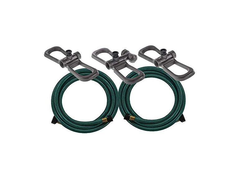- ADJUSTABLE NOZZLES: Each sprinkler waters up to a 24-foot diameter and is adjustable from a full to partial circle.