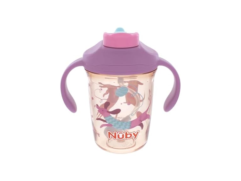 - 2-IN-1 LID DESIGN: The dual-function, dishwasher safe lid features a 360° weighted straw and a hard spout, offering two spill-resistant ways to drink in one convenient Nuby sippy cup