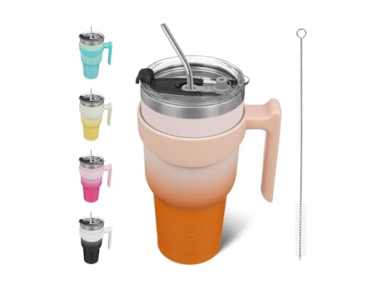 - Cupholder Friendly Travel Mugs With Handle: The Insulated Cups Has a Narrow Bottom And A Wide Mouth Fits Most Cup Holder In Car, With Detchable Handle And Reusable Straw To Use More Portable, You Can Stay Sipping From Your Essential Hydration Companion, Even On Your Busiest Days