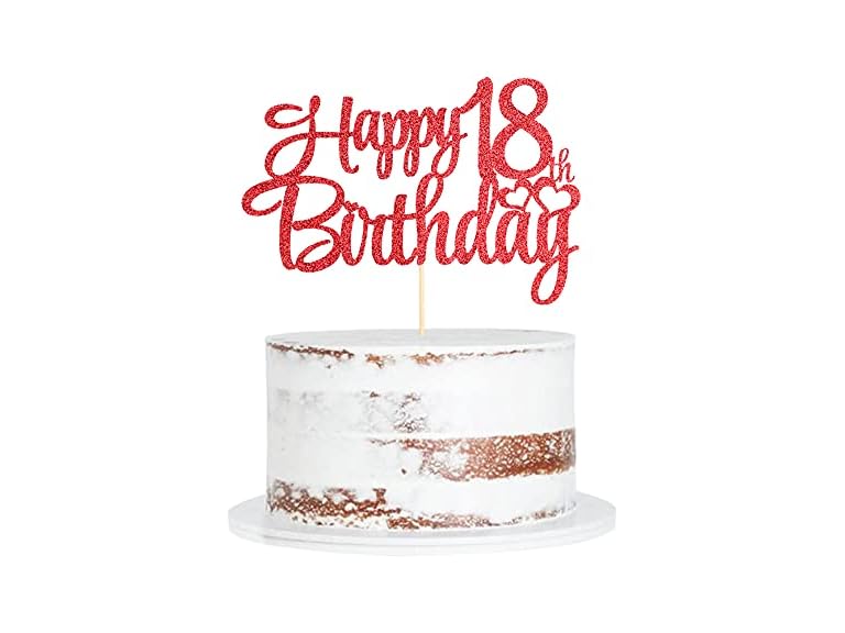 - (1) Qertesl Red 18th birthday cake topper happy 18th birthday cake topper 18th birthday party cake decorations (length 7.5in * wide6.5 in)