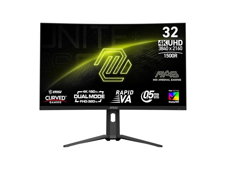 - (1) MSI 31.5" Curved Gaming Monitor | UHD 3840x2160 | 160Hz | 1500R | AMD FreeSync | MAG 321CUPDF