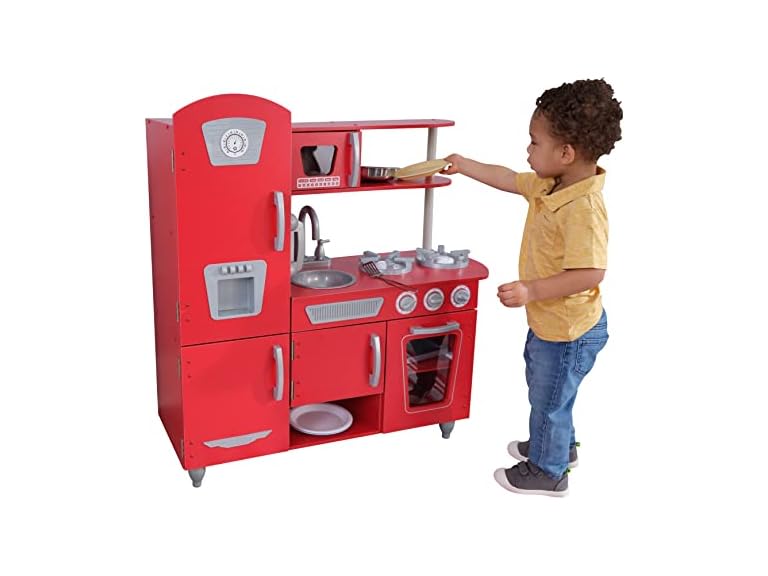- (1) KidKraft Red Vintage Wooden Play Kitchen with Stainless Steel-Look Trim, Play Phone