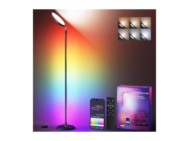 - RGBCW & DIY Lighting: This bright standing floor lamp offers millions of colors and dynamic modes, allowing you to customize each LED segment to create your own lighting design. Switch between preset modes or craft unique color combinations that match your mood or setting.